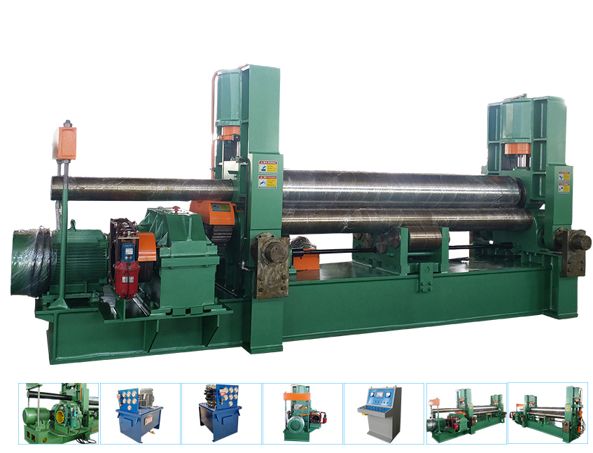 W11SNC萬能式三輥卷板機是一種雙夾板彎板機。 上輥為液壓驅動。 上輥可水平和垂直調節,兩個下輥是固定的。 所有合金鋼輥均經過感應淬火和熱處理。 經過感應淬火處理后,所有的輥都將被研磨和拋光。